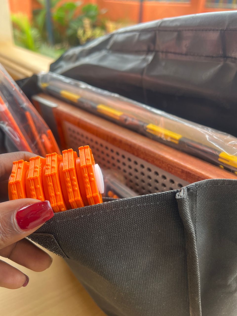 The Cubes & Cubarithms is a braille math teaching aid for visually impaired children or older students with learning difficulties. It helps in the teaching of arithmetic layout and, unlike paper, allows easy correction.